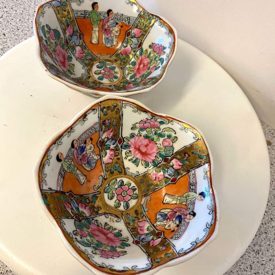2 kinesiske skåle h 7 cm dia 14,5 cm 40kr. pr stk.