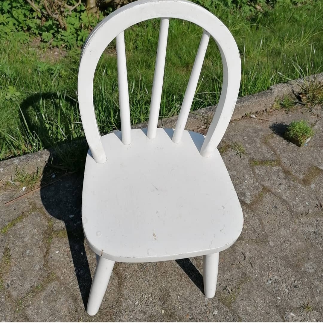 En skøn børnestol I meget kraftigt træ. | vejl.pris kr. 125. #unikkelopper