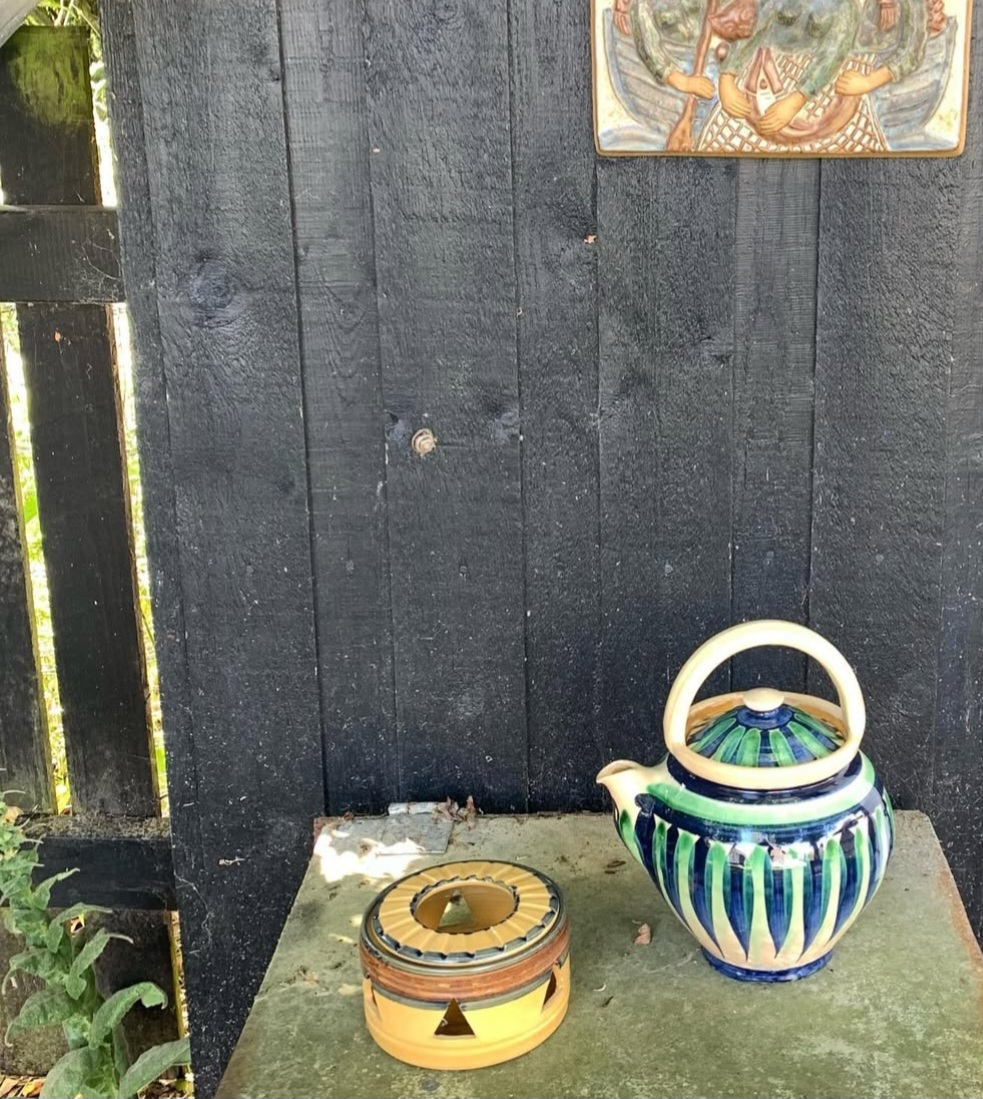 Michael Andersen relief 40 x 25 cm, kr 300,-, stor tekande kr 225,- og tevarmer kr 100,- begge fra Lillerød lervarefabrik